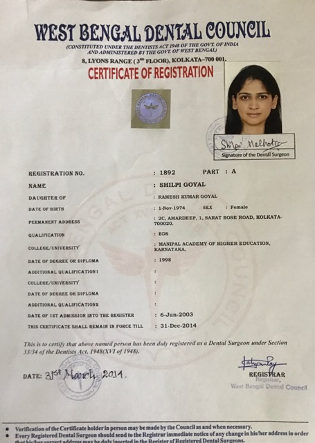 Dr Shilpi Malhotra, is one of the leading dentists of Kolkata; and has been practising family dentistry for over 25 years at Mirchandani & Malhotra Dental World in Camac Street.